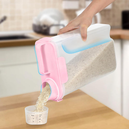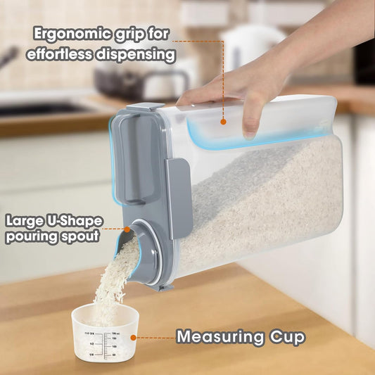 Rice Storage Container 10 Lbs, Airtight Food Dispenser with Large Spout and Cup for Rice, Cereal, Flour, Oatmeal, Pet Dog Cat Food Storage