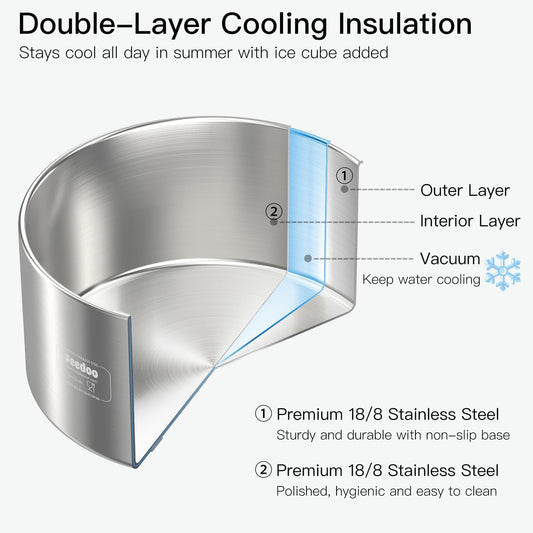 82oz Double Layers 304 Stainless Steel Dog Bowl - Insulated & Durable | Non-Slip Base | Easy to Clean | BPA-Free Safe Dog Food and Water Bowl