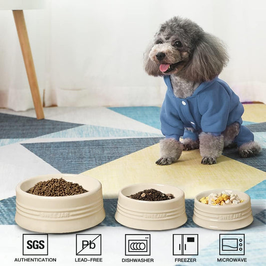 Sweejar Gradient Dog Bowl, Ceramic Dog Food Dish for Puppy and Kitten, Porcelain Pet Bowl for Food and Water 8 oz (Beige)