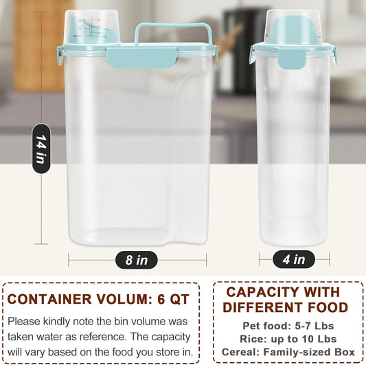 TBMax Dog Cat Food Storage Containers 2 Pack 10 Lbs to 14 Lbs Airtight Pet Food Container Dispenser with Large Spout & Portable Handle, Travel Dog Treat Cat Food Storage Bin Bird Seed Container