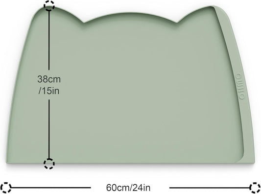 OHMO Dog Food Mat(Sage Green, 24 * 15'') w/Residue Collection Pocket Silicone Pet Feeding Mat for Floor High Edges Anti Spills Waterproof Cat Water Bowl Tray, Easy Clean Placemat