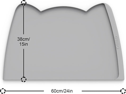 OHMO Dog Food Mat(Ash, 24 * 15'') w/Residue Collection Pocket Silicone Pet Feeding Mat for Floor High Edges Anti Spills Waterproof Cat Water Bowl Tray, Easy Clean Placemat