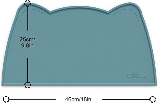 OHMO - Cat Food Mat, Silicone Pet Feeding Mat for Floor Non-Skid Waterproof Dog Water Bowl Tray, Easy to Clean Pet Placemat (Light Blue, 18 * 9.8'')