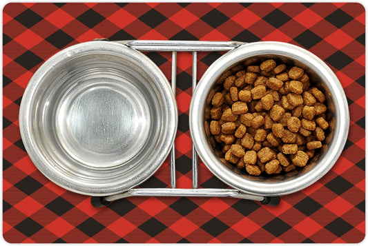 Lunarable Plaid Pet Mat for Food and Water, Monochrome Traditional Lumberjack Pattern Repating Checkered Squares Design, Non-Slip Rubber Mat for Dogs and Cats, 18" X 12", Grey Black