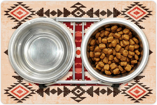 Lunarable Tribal Pet Mat for Food and Water, Original National Heritage Maya Pyramids Local Region Esoteric Myth Motive, Non-Slip Rubber Mat for Dogs and Cats, 18" X 12", Maroon