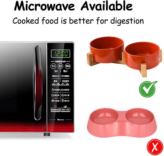 Petygooing Dog Bowls,Ceramic Cat Dog Bowl Set with Wood Stand for Food and Water,Non-Slip Cute Modern Pet Dish for Cats Small Size Dogs Puppy (13.5OZ/5.1 in) Rust Red
