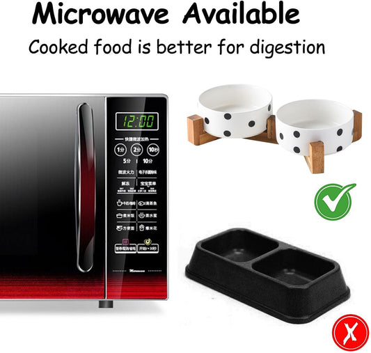 Petygooing Ceramic Dog Bowl Set with Stand,Cat Pet Food and Water Dishes,Small Dog Bowls Anti -Slip Set of 2 Cat Bowls Pet Food Dish Small Size Pet (13.5OZ/5.1 in) Black Dot