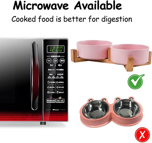 Petygooing Ceramic Cat Dog Bowl Set with Stand,Pink Pet Food and Water Dish,Small Dog Bowls Anti Slip Set of 2 Cat Bowls Pet Food Dishes Pet Bowl Small Size Pet (13.5OZ/5.1 in)