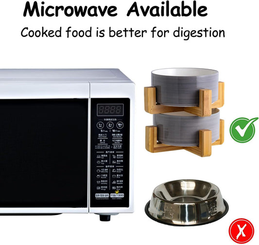 Petygooing Ceramic Cat Dog Bowl Set with Stand,Small Dog Bowls,Pet Food and Water Dish, Anti Slip Set of 2 Cat Bowls-Cute Modern Pet Food Dish Small Size (13.5OZ/5.1 in) Grey White