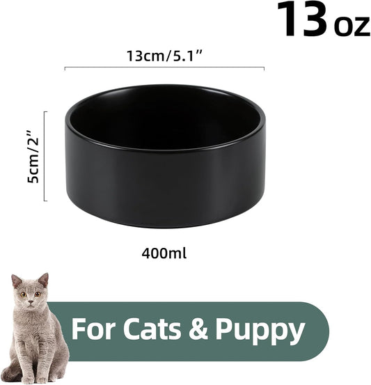Ceramic 5.1inch Set of 2 Dog and Cat Bowls, Food and Water Feeder for Small Breed Dogs, Kitty, Cats, 2pcs Dog & Cat Dishes(2 Bowls, Black)