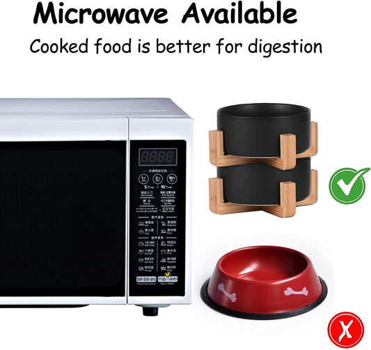 Ceramic Raised Dog and Cat Bowl Set, 2 Heights Elevated Stand, Food and Water Bowl for Small Breed Dogs, Cats, Kitty, Weighted Dog Dishes, Pet Bowls(5.1'',13.5oz, Black)
