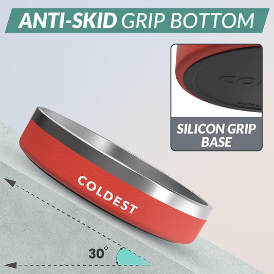Coldest Dog Bowl - Anti Rust Metal, Non Slip, 3 Layers Insulated Stainless Steel Dog Bowls - Spill Proof & Heavy Duty - Water Bowl for Dogs, Cats & Pets, Dish Washer Safe (21 oz, Red)