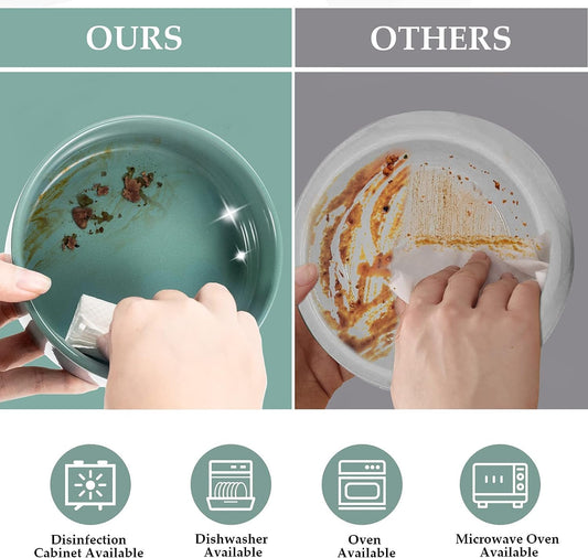 SPUNKYJUNKY Ceramic Dog and Cat Bowl Set with Wooden Stand, Modern Cute Weighted Food Water Set for Small Size Dogs (13.5OZ) & Medium Sized Dogs (28.7OZ) & Cats (3.6 Cups, 2 × Light Green)