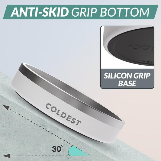 Coldest Dog Bowl - Anti Rust Metal, Non Slip, 3 Layers Insulated Stainless Steel Dog Bowls - Spill Proof & Heavy Duty - Water Bowl for Dogs, Cats & Pets, Dish Washer Safe (21 oz, Epic White)