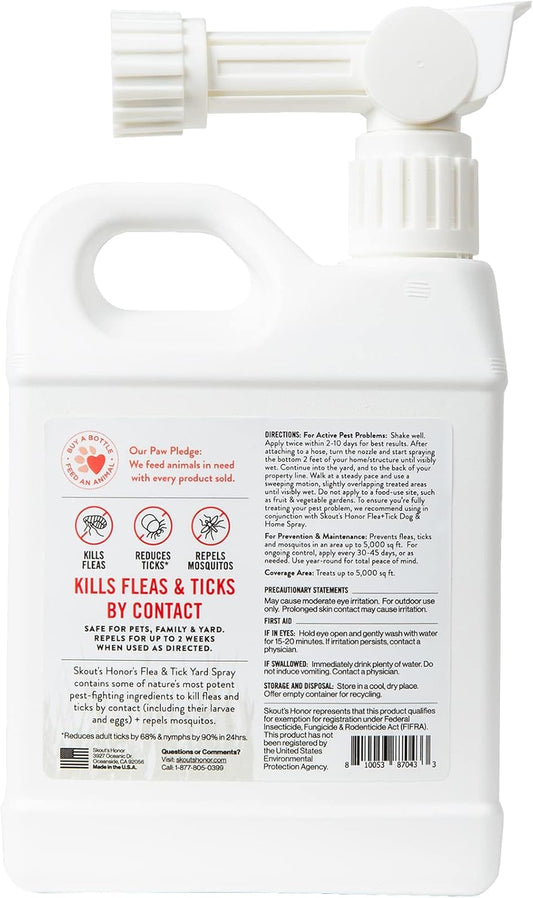 Skout's Honor Flea and Tick Yard Spray - Natural Peppermint & Cedarwood Formula, Helps to Protect from and Against Fleas, Ticks and Mosquitos, Covers upt o 5,000 Sq F, 32 oz.