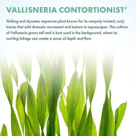 Live Plant - Tall Grass, Corkscrew Vallisneria (Vallisneria Americana 'Contortionist') - Moderate to High Light, Bright Green, Background - Lead Bunch, 4 Pack