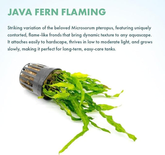 Live Plants - Java Fern ‘Flaming’ (Microsorum pteropus 'Flaming') - Low to Medium Light, Bright Green Accent Aquatic Plant, Midground Placement - Rhizome Growth - Pot, 3 Pack