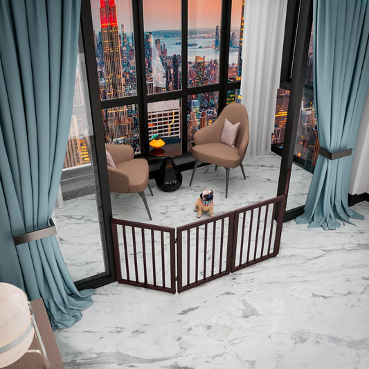 Freestanding Pet Gate for Dogs, Foldable Wooden Dog Gate for House, Indoor Dog Gate for Doorways, Stairs, Gates for Dogs Indoor, Support Feet Included, 24" Height 3 Panels, Brown