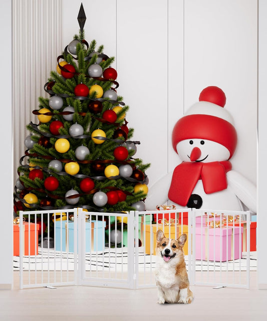 ZJSF Foldable Freestanding Indoor Dog Gate for House Wood White Long Pet Gates Dog Fence for Stairs Puppy Gates for Hallways,Pet Fence, Puppy Gate,Support Feet Included 24 "Height-4 Panels