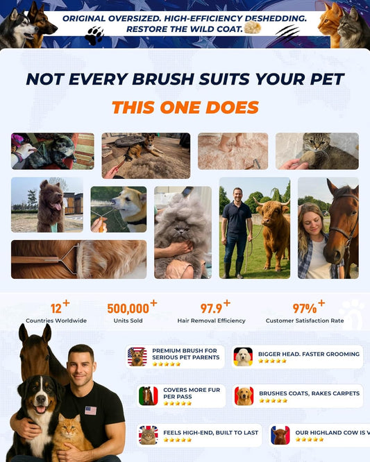 Oversized 2-Sided Dog Brush For Shedding Undercoat Rake for Dogs & Cats & Horses, Remove Mats,Dematting Comb, Grooming Brush for German Shepherds Medium to Long-Haired Pets(African Padauk Handle)