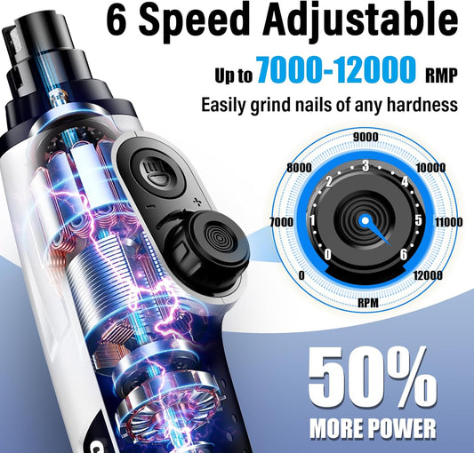 Casfuy Smart 6-Speed Dog Nail Grinder - 50% More Power Pet Nail Grinder with 2 LED Lights Quiet Rechargeable Electric Dog Nail Trimmers File Toenail Grinder for Large Medium Small Dogs & Cats (White)