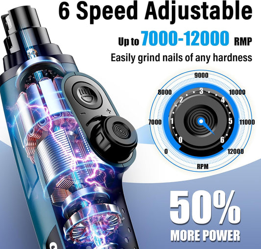 Casfuy Smart 6-Speed Dog Nail Grinder - 50% More Power Pet Nail Grinder with 2 LED Lights Quiet Rechargeable Electric Dog Nail Trimmers File Toenail Grinder for Large Medium Small Dogs & Cats (DB)