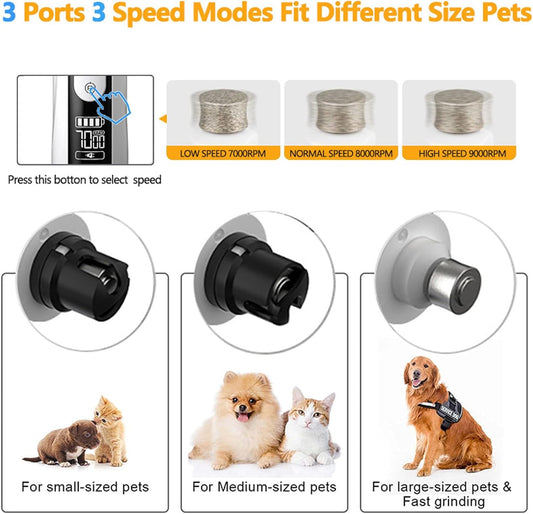Heusom Silent Groom Pro Nail Grinder Cordless for Small Large Dogs - 3 Speeds Quiet Cat Dog Nail Trimmer with 2 LED Lights, 2000mAh Rechargeable for Thick Nails with Replacement Heads (1pc+2 Heads)