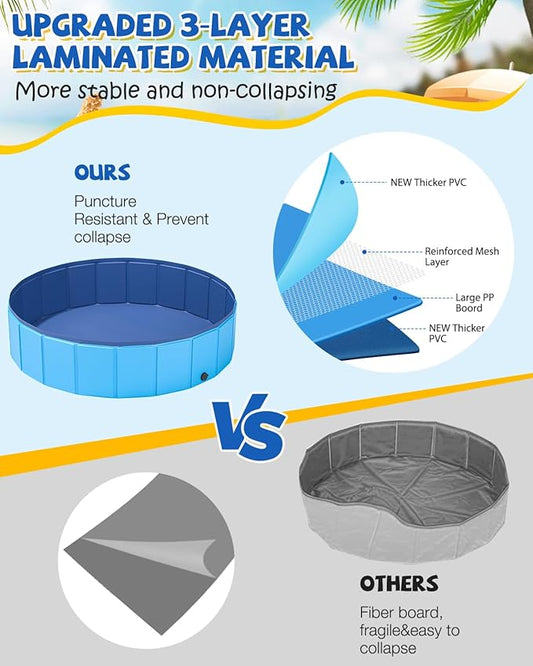 Dog Pool for Large Dogs, Foldable Plastic Pool for Dogs Slip-Resistant (47.2''x 12'')