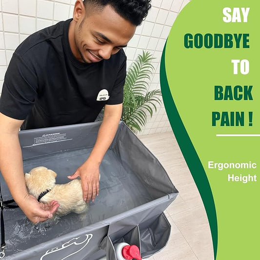 Elevated Dog Bathtub, Portable Dog Washing Station for Home with Towel Bar & Storage, Folding Pet Bath Tub for Small & Medium Dogs