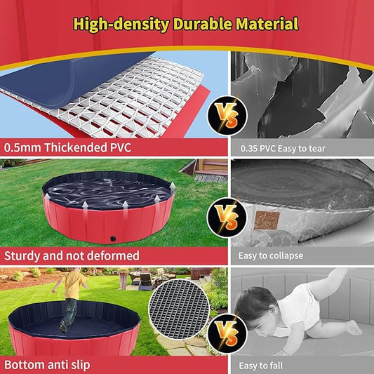 Foldable Dog Pool, 47" x 12" Kiddie Pool with Hard Plastic, Non-Slip Dog Bath Tub for Outdoor Backyard, Collapsible Dog Swimming Pool for Kids Dogs Pets (Red)