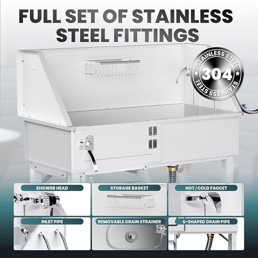 Dog Washing Station for Home, 38" White Professional Stainless Steel Dog Grooming Tub, Height Adjustable Dog Bathing Station, Upgrade Parts, Dog Bath Tubs for Small & Medium Dogs(Left Stair)