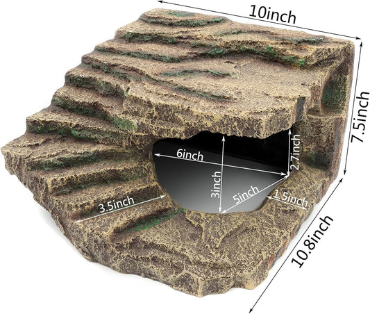 Large Reptile Hide Shale Scape Step Ledge, Reptile Cave Hideout, Bearded Dragons Accessories, Basking Rocks for Bearded