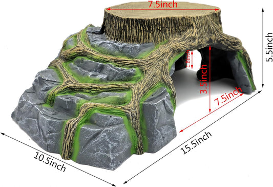 Extra Large Resin Reptile Hideouts Cave Habitat Decor for Reptiles, Amphibians, Fish Tanks and Gecko, Leopard