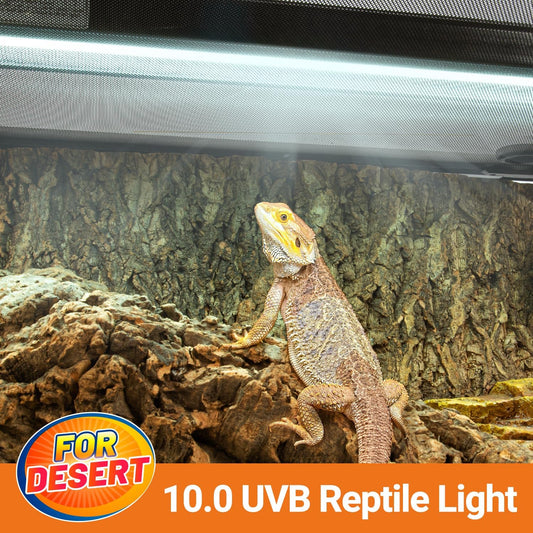 T5 Reptile Light Fixture Combo Kit 24W Light Fixture Reptile Terrarium Hood 10.0 UVB Light Bulb Fluorescent Tube Ideal for Tropical and Deserts Such as Bearded Dragon Lizards and Tortoises