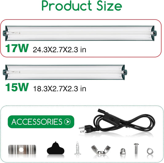 T8 Reptile Light Fixture Combo Kit 17W Light Fixture Jungle Green Reptile Terrarium Hood 10.0 UVB Light Bulb Fluorescent Tube for Bearded Dragon Lizards Tortoise for Tropical and Deserts Reptile lamp