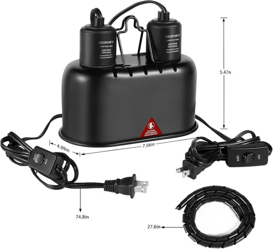 Nano Reptile Heat Lamp Max 40W Dual Reptile Light Fixture with Two Independent Switches, UVB Light Fixture Dual Dome Lamp for Bearded Dragon, Turtles, Snake and Lizard Terrarium