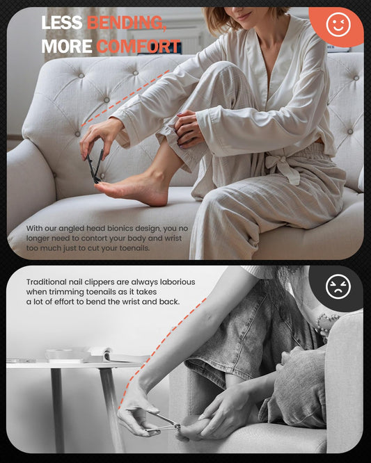 Angled Head Large Toenails Clippers for Seniors, Nail Clipper for Thick Toenails and Fingernails, Nail Cutter with Catcher, Nano Glass Nail Buffer, Gifts for Stocking Stuffers Men Women