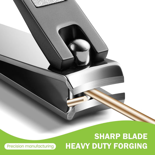 BEZOX Angled Head Toe Nail Clippers for Seniors for Thick Nails - Ergonomic Toenails Clipper for Thick Toenails, Premium Finger Nails Clipper for Adult with Catcher - Black