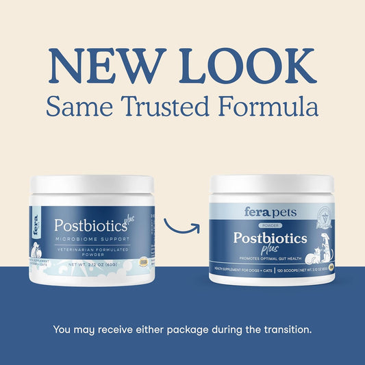 Fera Pets Postbiotics Plus Prebiotics for Dogs & Cats - with Slippery Elm - Promotes Optimal Digestive Health & Inflammatory Response - Enhances Immunity - 120 Scoops
