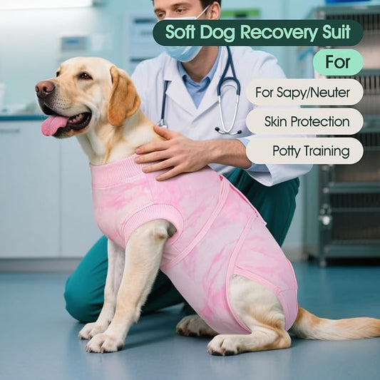 Kuoser Dog Surgery Recovery Suit, Anti Licking Pet Surgical Suit for Dogs Male Neuter, Female Dog Surgery Suit for Spay Subsititute E-Collar Cone, Dogs Body Suits After Surgery Pink Tie Dye L