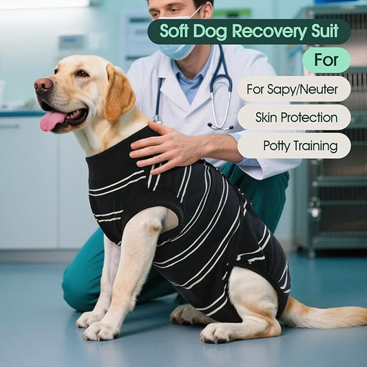 Kuoser Dog Surgery Recovery Suit for Female Male Dogs, Stripes Spay Neuter Anti-Licking Dog Onesie, Surgical Suit Snugly Pet Post Surgery Vest Bodysuit for Abdominal Wounds Skin Disease, Black L