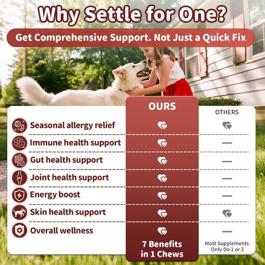 Dog Allergy Chews, Probiotics Supplement for Dogs Seasonal Allergies & Immune Support & Gut Health Pro, Mushroom Soft Chews for Joint, Energy, Itching Skin Support, Bacon Flavor - 90 Count