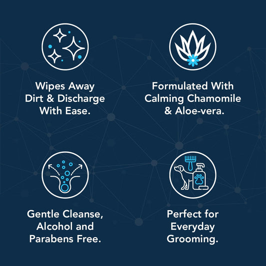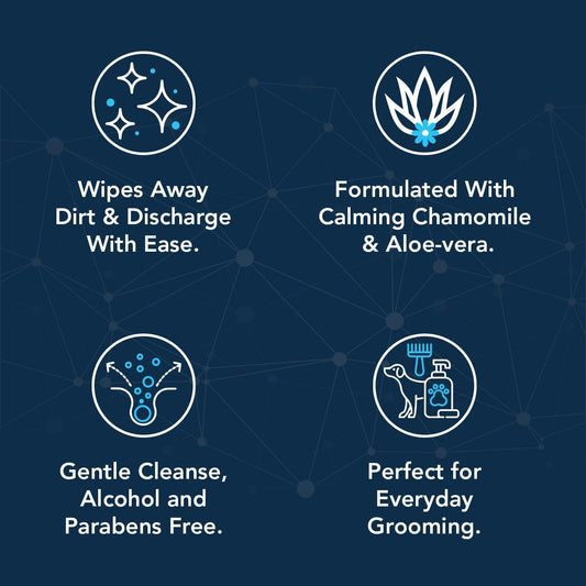 NOVEHA 100PCs Dog Eye Wipes - Tear Stain Remover for Dogs - Formulated with Chamomile and Aloe to Remove Eye Debris, Tear Stains & Eye Discharge - Plant Based, Safe, and Large 5"x5" Unscented Wipes