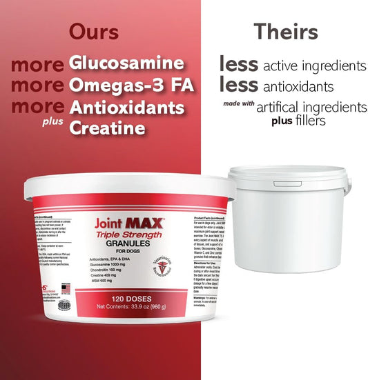 TS Joint Supplement Vet Formulated Pain & Inflammation Relief Treats Hip Dysplasia & Arthritis, Glucosamine, Chondroitin, Turmeric, MSM, HA, Creatine, Omega 3 EPA + DHA. Granules 120 Doses