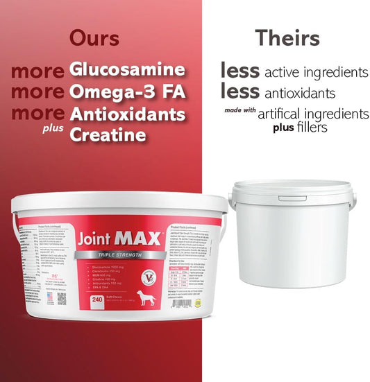 PHS Joint MAX Triple Strength (TS) Soft Chews for Dogs - Glucosamine, Chondroitin, MSM, Turmeric, Omega 3 - Hip and Joint Pain Relief and Support for Dogs - Made in USA - 30 Soft Chews