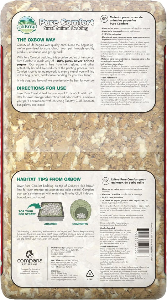Oxbow Pure Comfort Small Animal Bedding, Odor & Moisture Absorbent Litter for Bunny Litter Box, Low Dust Bedding for Guinea Pig Cage, White Paper, 36 Liter Bag