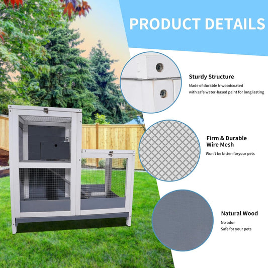 GUTINNEEN Rabbit Hutch with Chew-Resistant Metal Frame Indoor Bunny Cage Outdoor Rabbit Cage with Wheels and Leakproof Tray