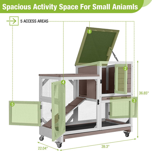 GUTINNEEN Rabbit Hutch Indoor Outdoor 2 Story Bunny House on Wheels Wood Rabbit Cage with 2 Pull Out Trays Guinea Pig Cage