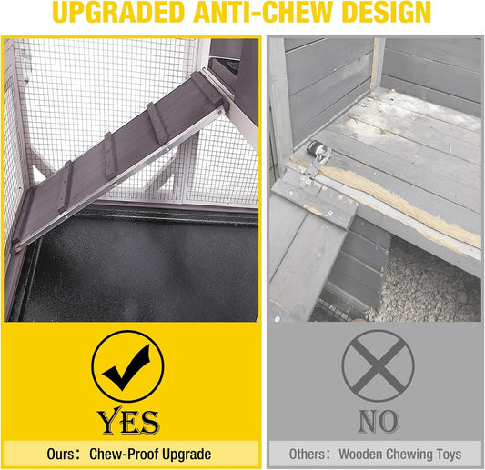 Aivituvin Rabbit Hutch Indoor Bunny Cage Outdoor with Run Chicken Coop Guinea Pig House with Waterproof Asphalt Roof,No Leakage Pull Out Tray (103.2" L x 25.2" W x 36.2" H, Grey-2 Sets)