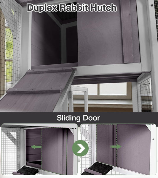 36''L Rabbit Hutch Outdoor with Casters and Run, Wooden Indoor 2 Story Guinea Pig Cage with Divider Panel, Pull Out Tray, Rabbit Duck Bunny House for Small to Medium Animals and Pet Lover, Gray